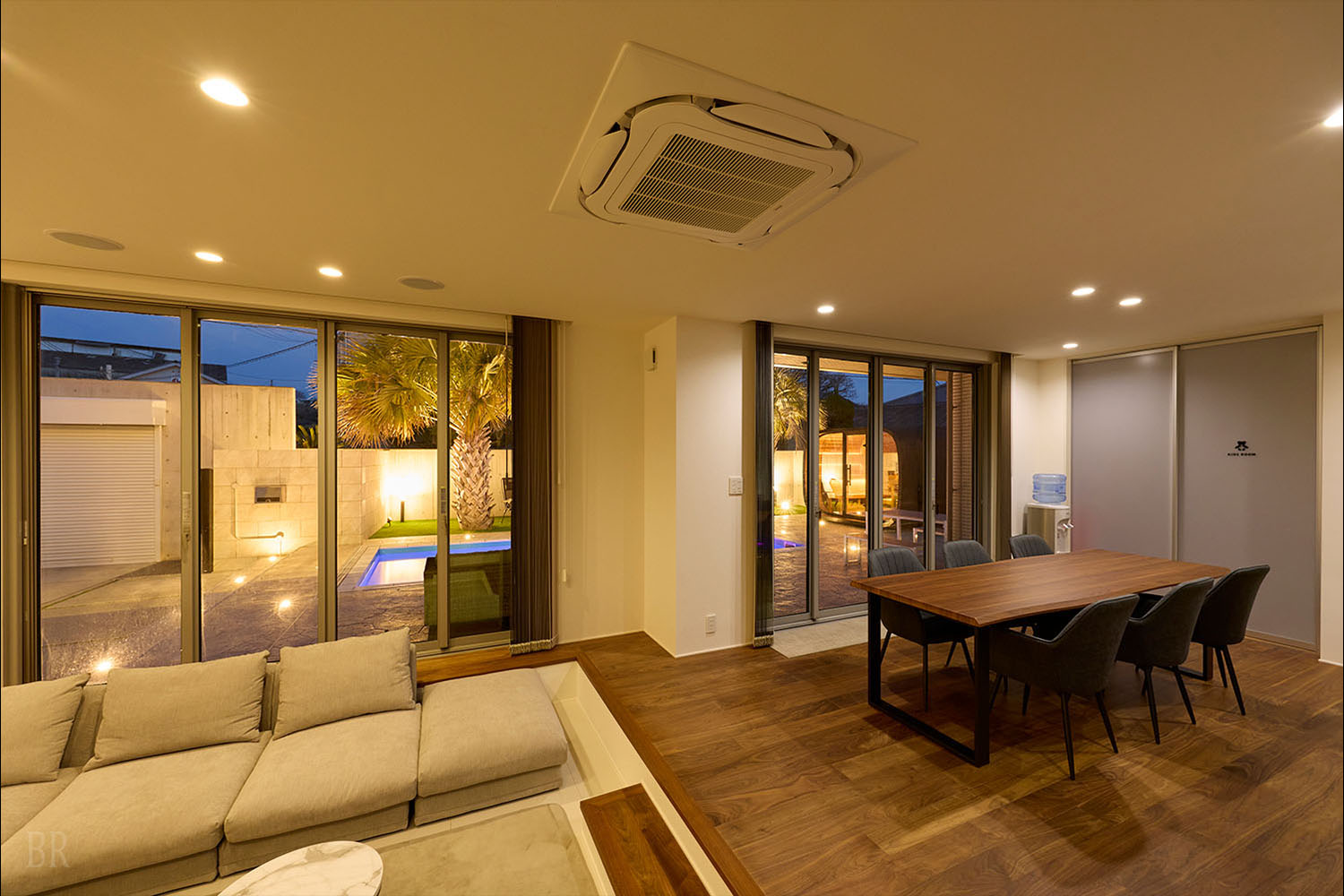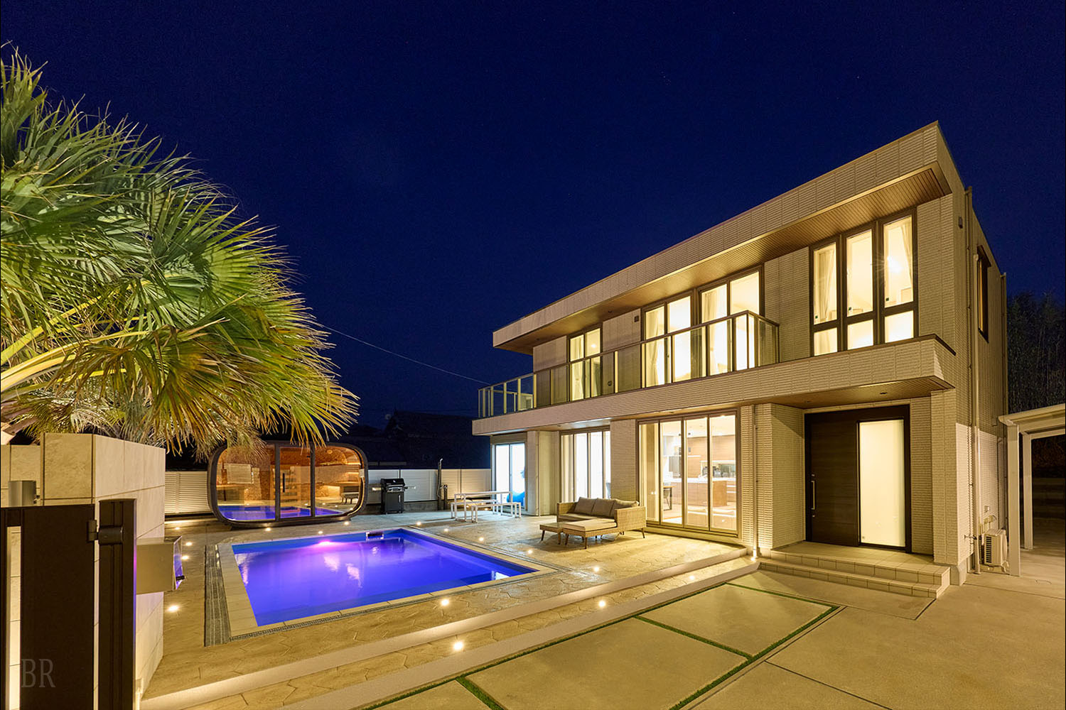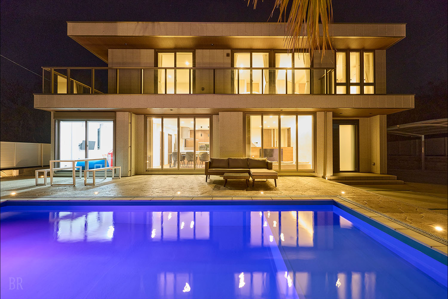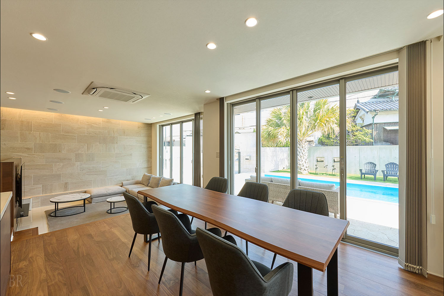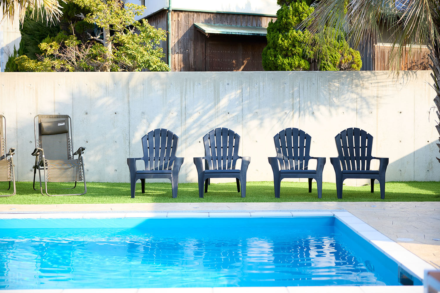 テラスには、ご家族やグループでもゆとりをもって楽しめる大型のプライベートプールを完備。